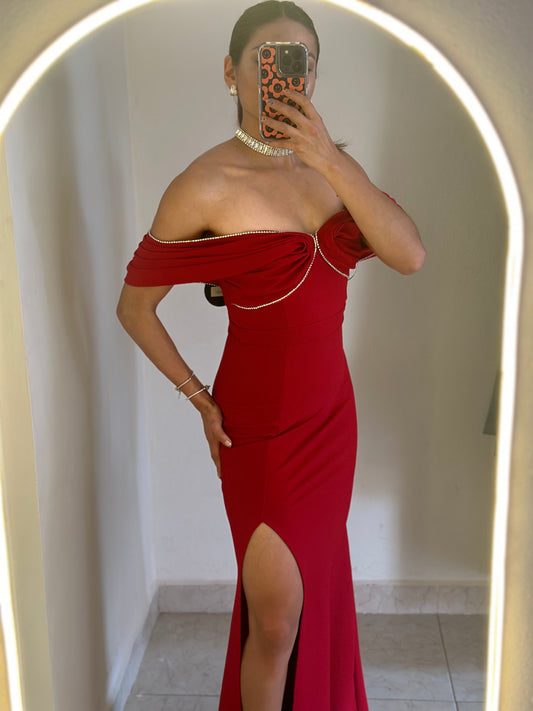 Vestido rojo hombros caídos