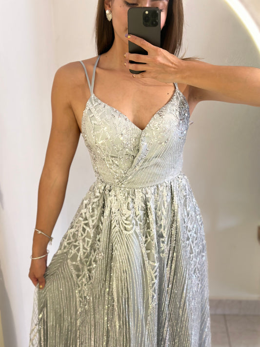 Vestido plata espalda descubierta